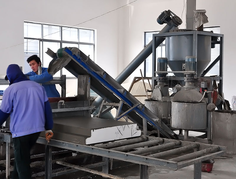 工人正在生产保温砂浆